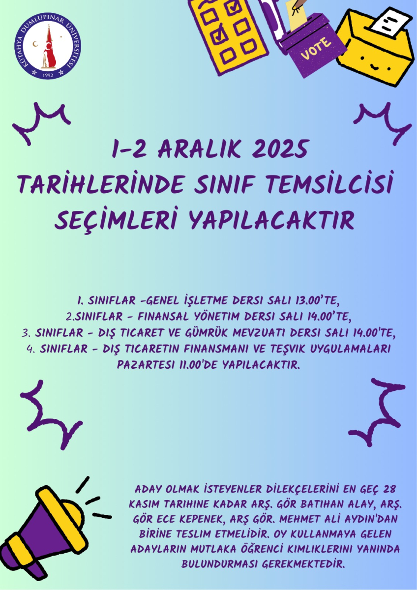 Sınıf Temsilcisi Seçimleri Yapılacaktır!